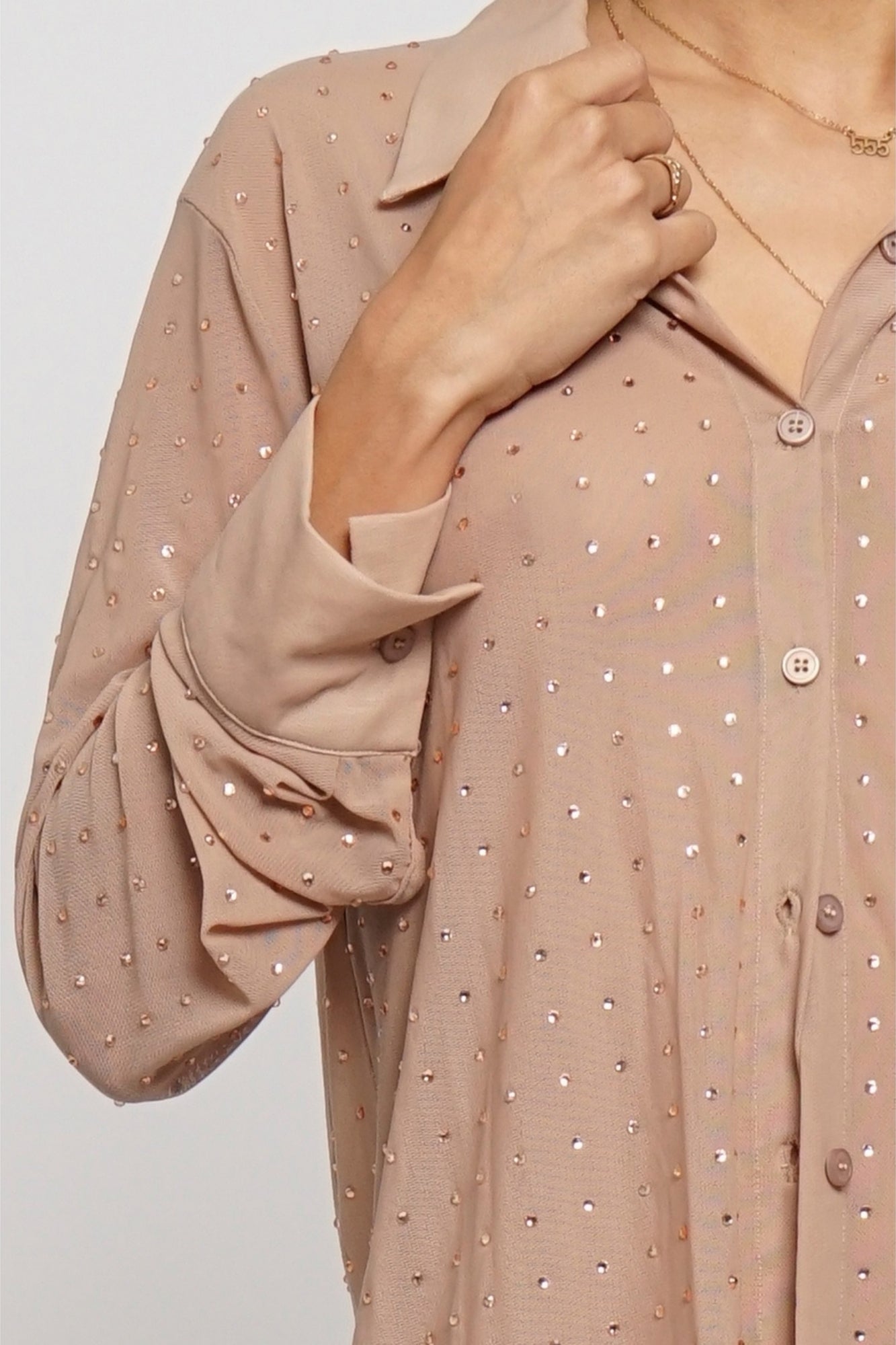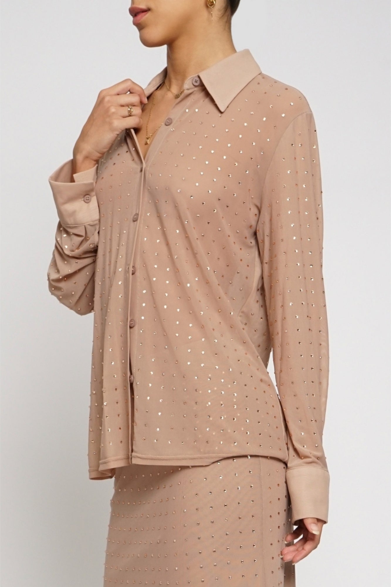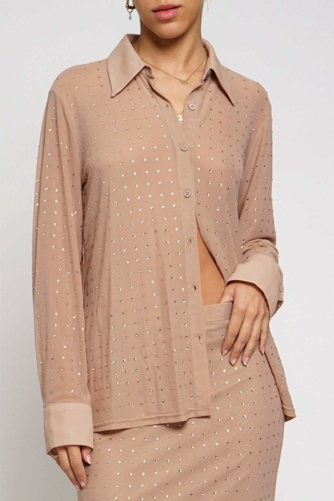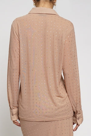 RHINESTONE NUDE BUTTON DOWN SHIRT