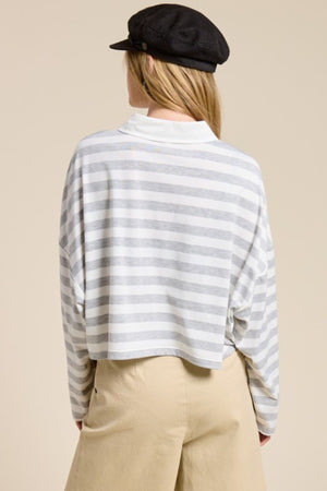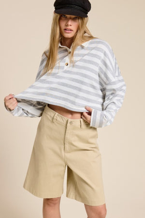 STRIPED CROPPED HEATHER GREY POLO