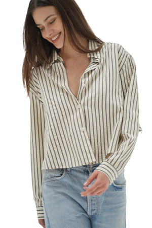 VALYRIA RHINESTONE PINSTRIPE BLUOSE