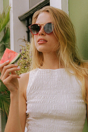 - This handcrafted frame is a combination of glossy acetate and glossy 18K gold-plated stainless steel hardware