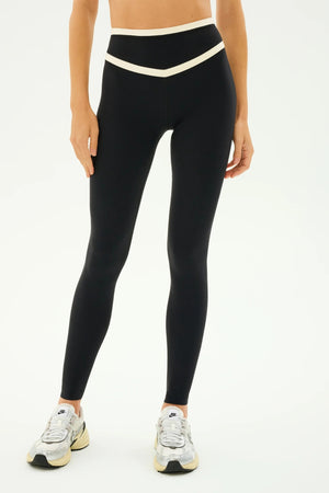- This rigor legging features a high waist with contrast waistband details, perfect for your next workout. Our Rigor fabric offers luxe mid compression comfort and superior performance.