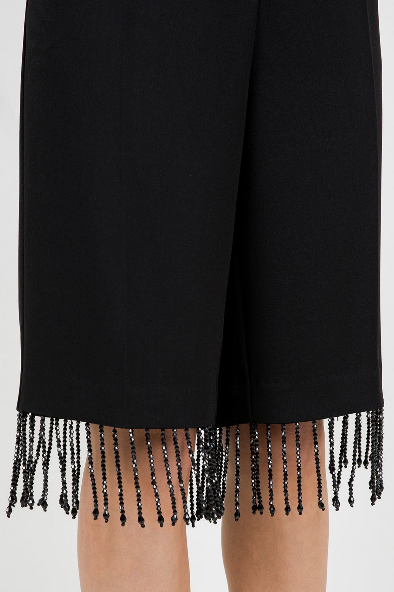 KNEE LENGTH WOVEN SHORTS WITH TASSEL BLACK BEAD TRIM