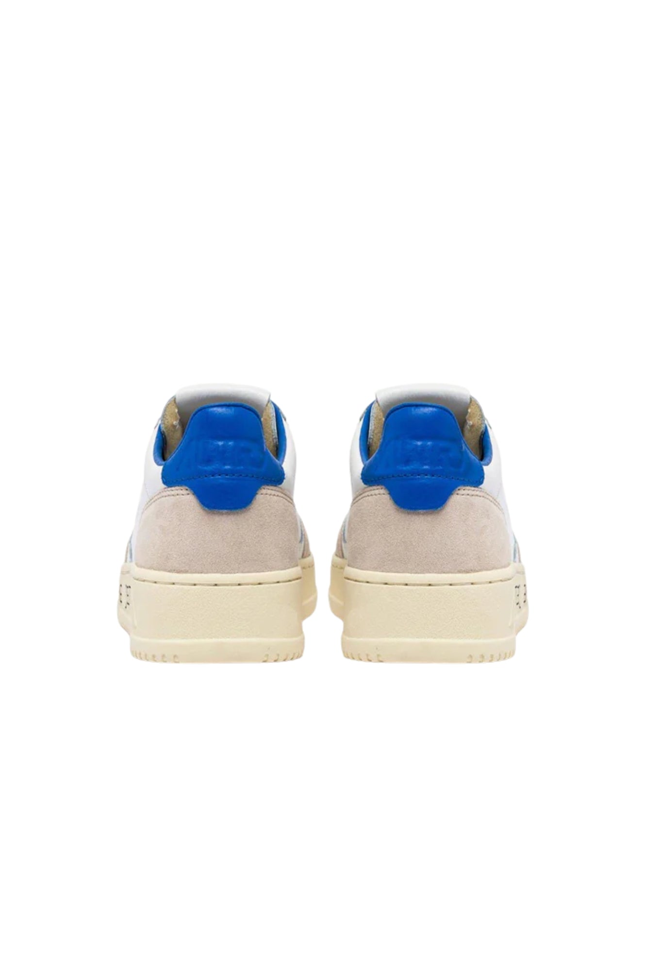 - The soft white leather upper is enriched by micro-holes on the toe and a blue logo tab on the heel, for an essential but captivating look.