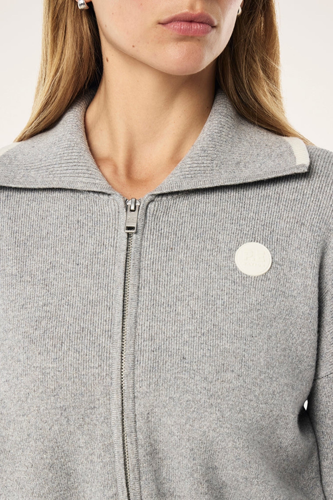 - The Verge Knit Jacket in Grey Marle is made from a beautifully soft cashmere blend knitted fabrication.