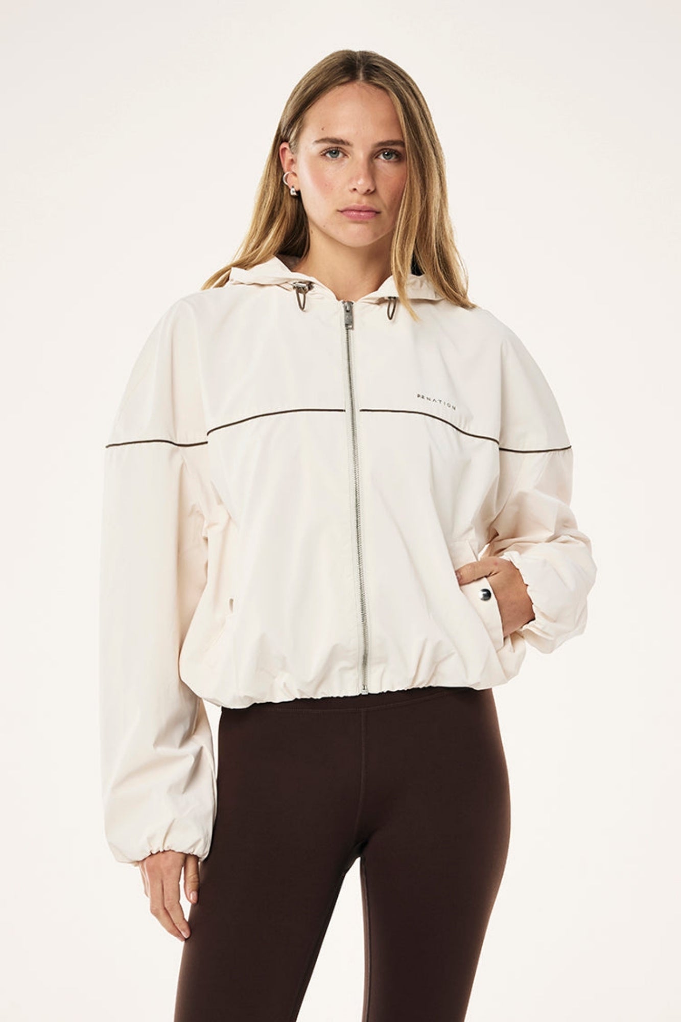 - The Vertex Jacket in Whisper White is designed in our signature lightweight spray fabric.
